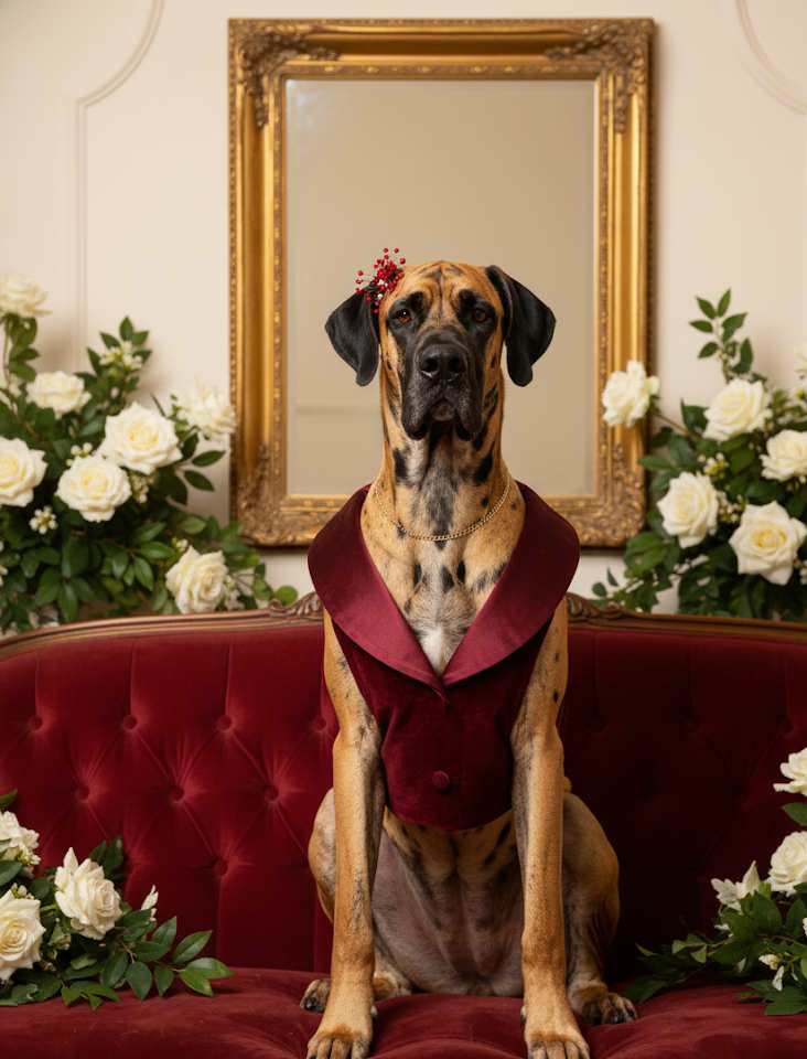 Select your favorite "Wedding Dog Bridal Pet Style " AI template and click to create the same style.