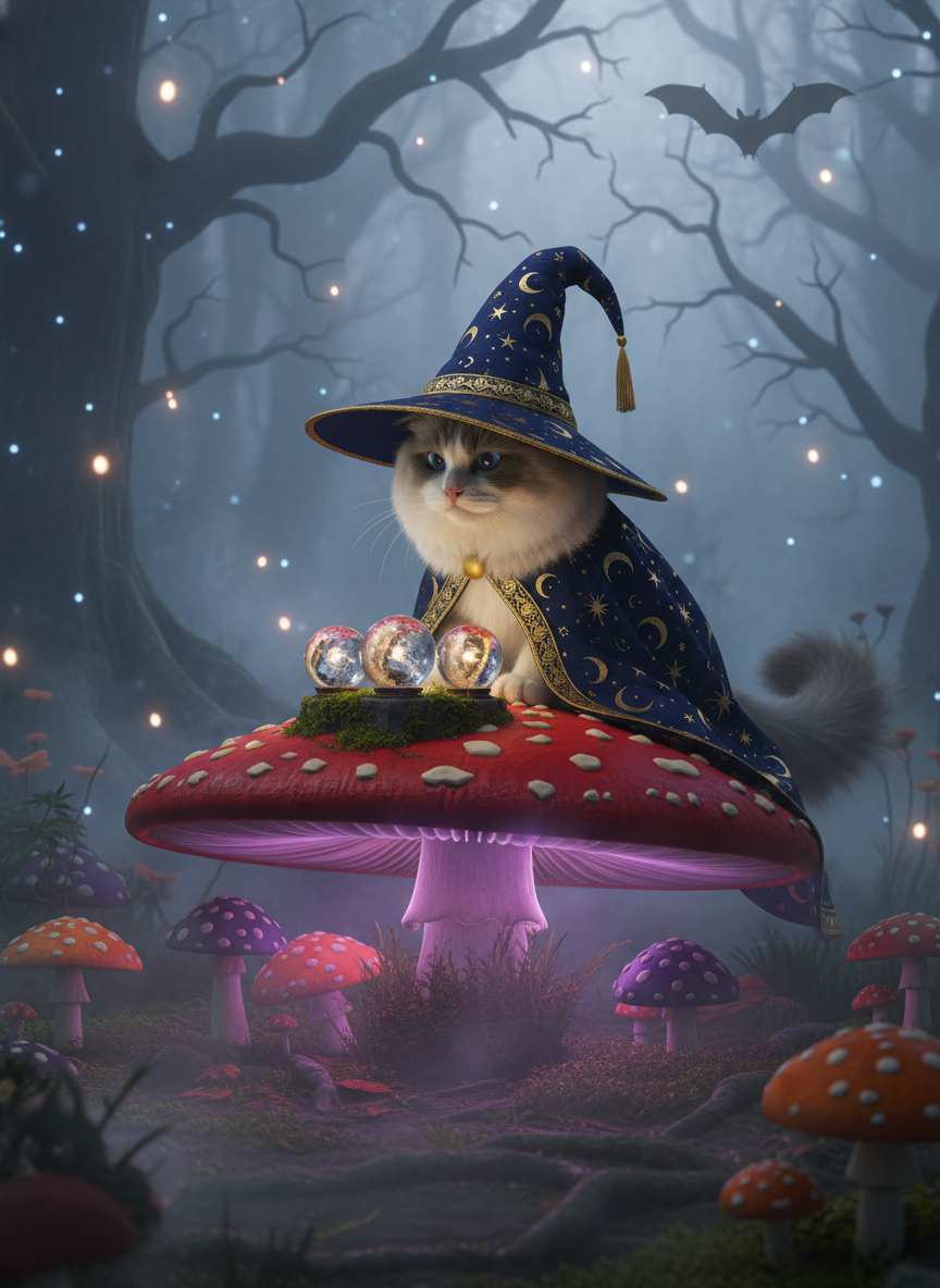 It’s an AI tool that transforms your cat into a witch-themed fantasy character with magical props, mystical lighting, and spellbinding aesthetics.