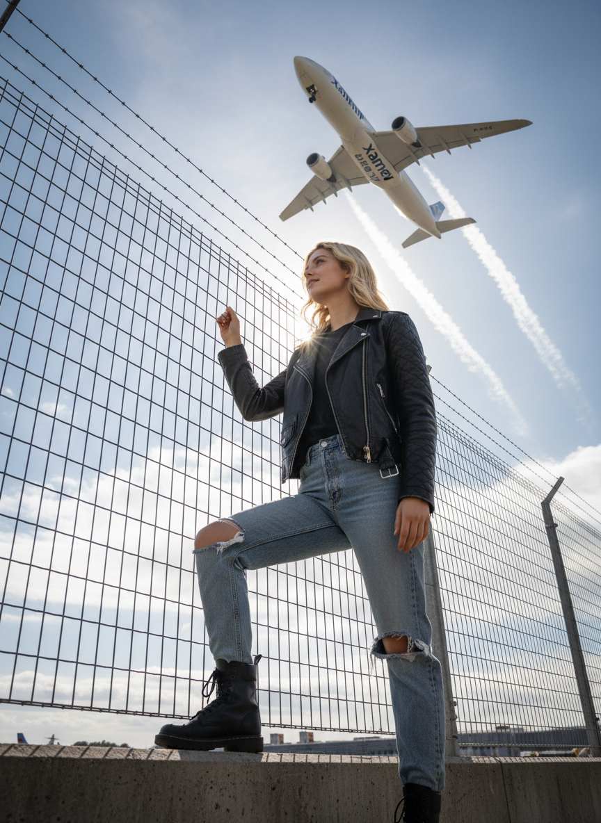 For the most convincing composite, use a clear, well-lit photo of yourself taken outdoors. A pose where you are looking up or pointing at the sky, or simply standing naturally works very well, as it matches the action of plane spotting. Avoid photos with complex backgrounds that are hard for the AI to separate.