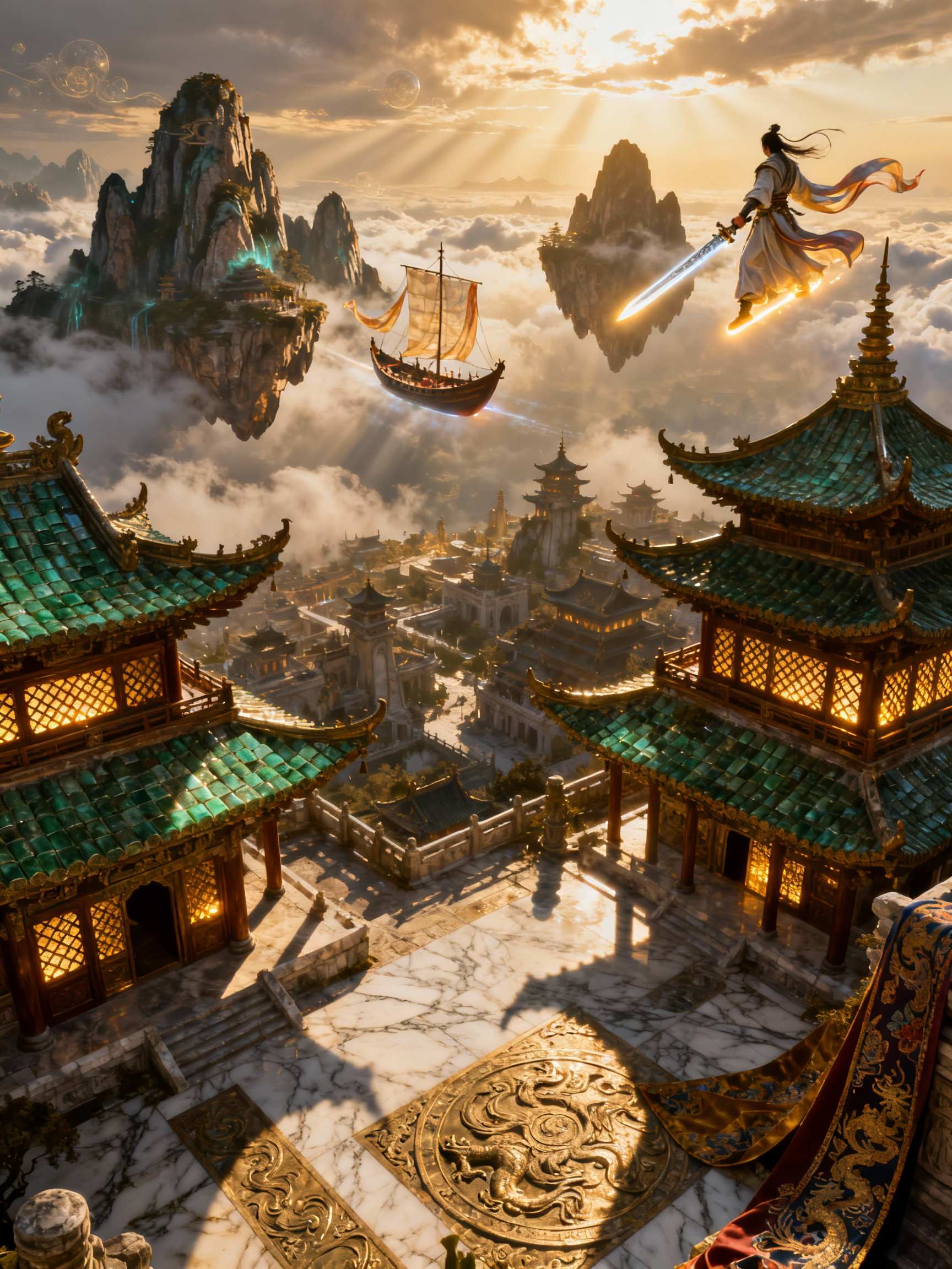 You can generate a wide variety of Xianxia-themed scenes, including:Character Portraits: Cultivators, immortal elders, demonic sect leaders, and celestial beauties in detailed attire.Landscapes & Realms: Misty mountain sects, floating islands, ancient forests filled with spiritual energy, and breathtaking celestial vistas.Action Scenes: Epic battles using flying swords and magical techniques, cultivation breakthroughs, and alchemy rituals.Architectural Scenes: Grand pavilions, tranquil bamboo groves, and intricate palace interiors typical of the genre.