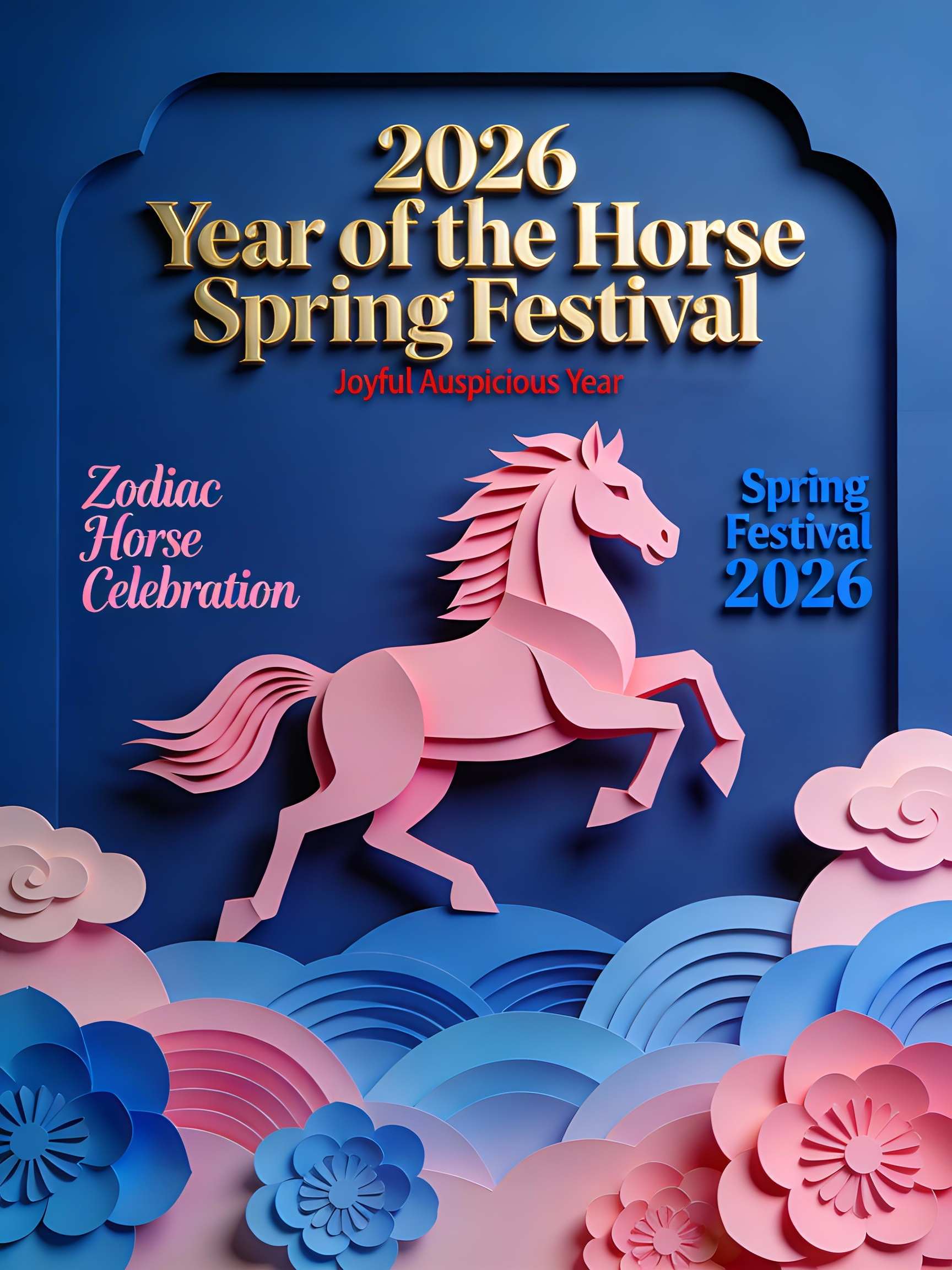 The Year of the Horse is one of the 12 zodiac signs in the Chinese lunar calendar, occurring every 12 years (e.g., 2014, 2026). The horse symbolizes speed, perseverance, success, and freedom. Creating a poster for it is a popular way to celebrate Lunar New Year, convey good wishes (like “Success is at hand!”), and showcase creative art that blends tradition with modern design for events, marketing, or personal joy.